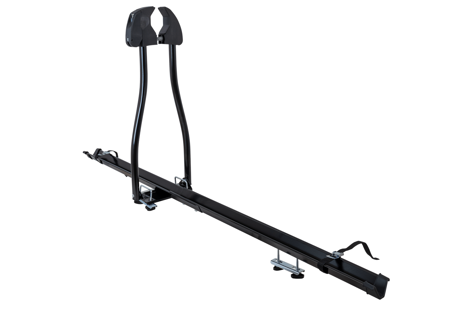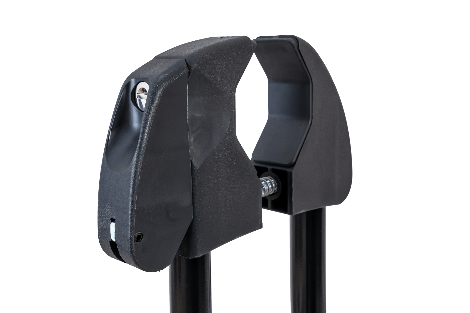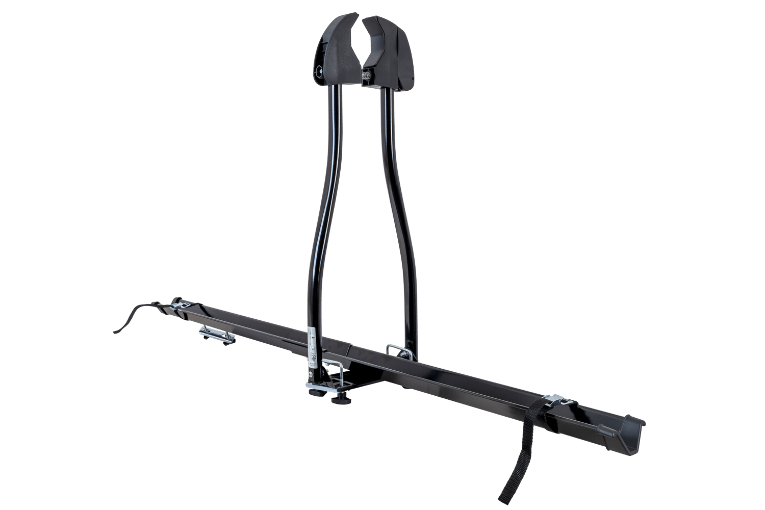 Rower w tym uchwycie jest mocowany w 3 punktach - za ramę i za koła, bagażnik jest wyposażony w wygodne zamknięcie umożliwiające zablokowanie ramy rowery jednym ruchem z zamkiem zabezpieczającym rower. Dzięki głębokiej rynience która ułatwia montaż, rower również zachowuje się stabilniej podczas montażu i jazdy samochodem. Mocna, stalowa konstrukcja zapewnia stabilność i bezpieczeństwo. W zestawie znajdują się dwa paski mocujące koła roweru.