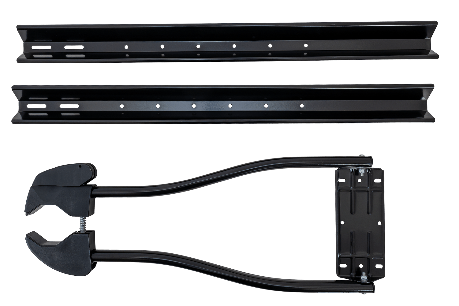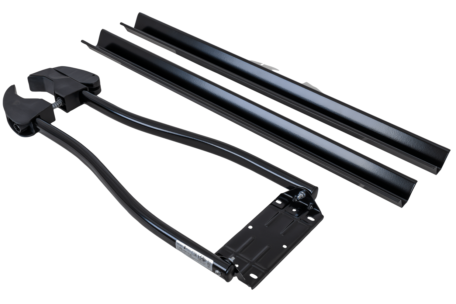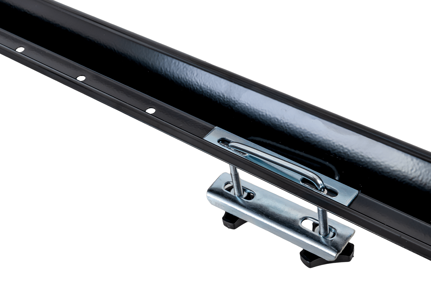 Uchwyt mocuje się do belek bagażnika za pomocą dołączonych obejm (cybantów) kompatybilnych z belkami (aluminiowymi i stalowymi) o szerokości do 59 mm.