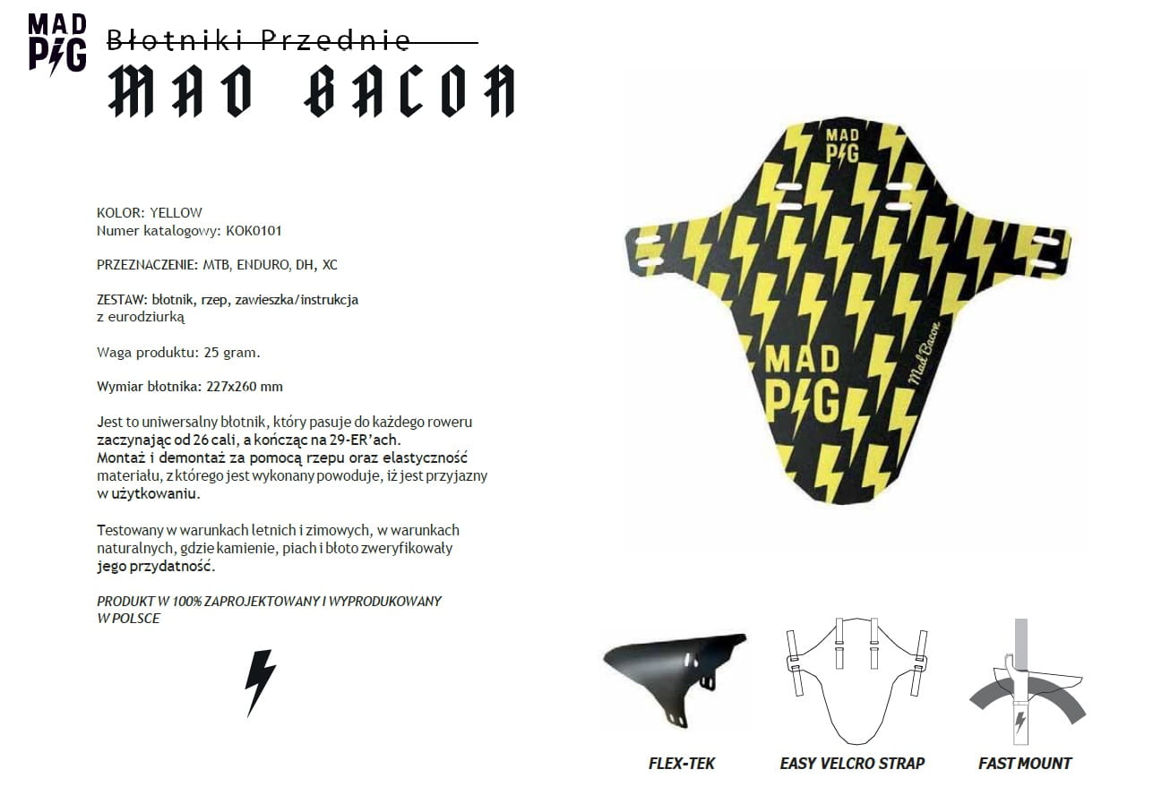 Błotnik Rowerowy Mad Pig Bacon Żółty