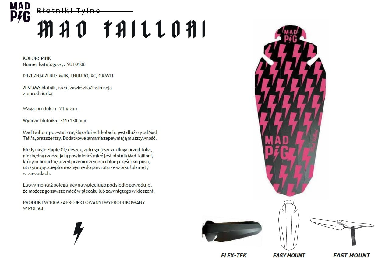 Mad Tailloni powstał z myślą o dużych kołach, jest dłuższy od Mad Tail’a, oraz szerszy. Dodatkowe łamania zapewniają mu sztywność.