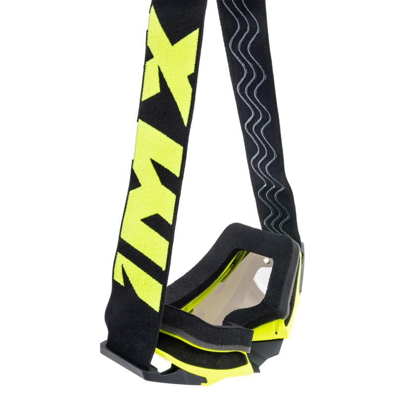 - Szeroki pasek (45 mm) z silikonowym nadrukiem od wewnątrz zapobiegającym zsuwaniu się gogli z kasku