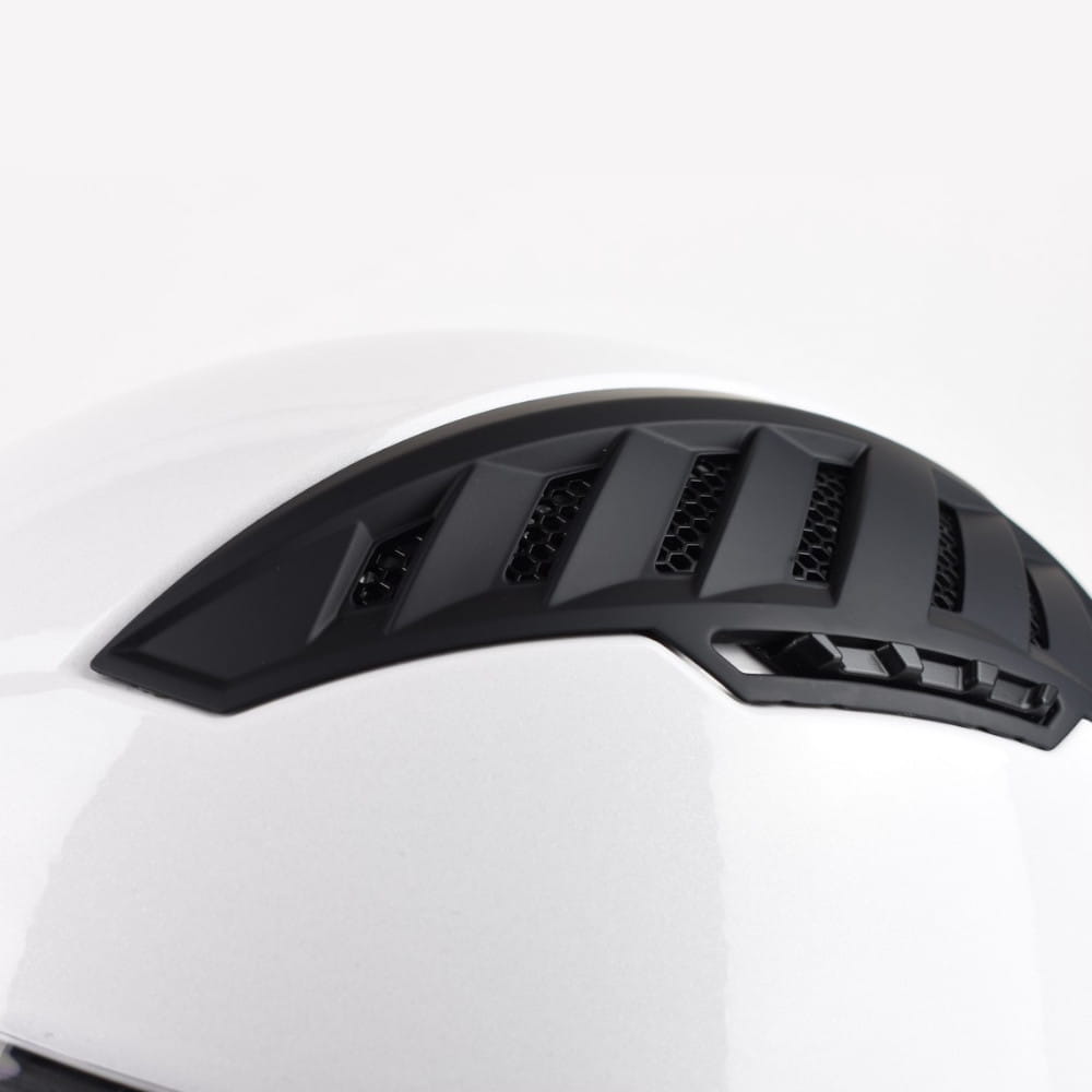 Wysokiej jakości kask otwarty wykonany z KPA®. Długi, odporny na zarysowania wizjer ze specjalnym zabezpieczeniem antyturbulencyjnym oraz przyciemniana blenda przeciwsłoneczna. Trzy rozmiary skorupy zewnętrznej dla lepszego dopasowania. Przyjazna dla skóry wyściółka wewnętrzna (antybakteryjna, wyjmowana, nadająca się do prania i szybkoschnąca) została wycięta laserowo. Kask posiada wydajną, zamykaną wentylację.