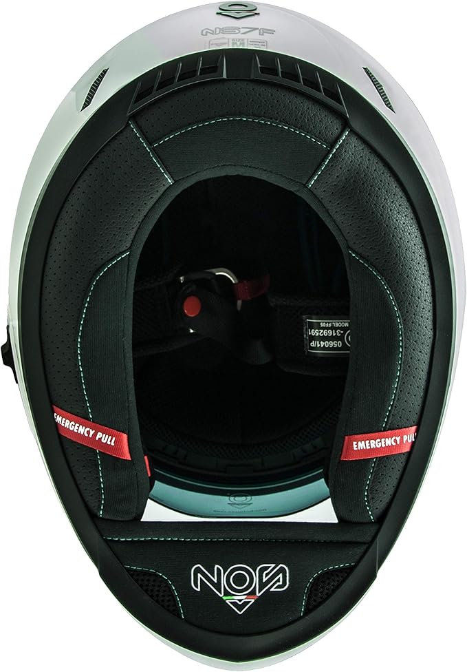 - Poduszki policzkowe z systemem Emergency Pull, umożliwiającym błyskawiczne ściągnięcie kasku w sytuacjach zagrożenia zdrowia motocyklisty