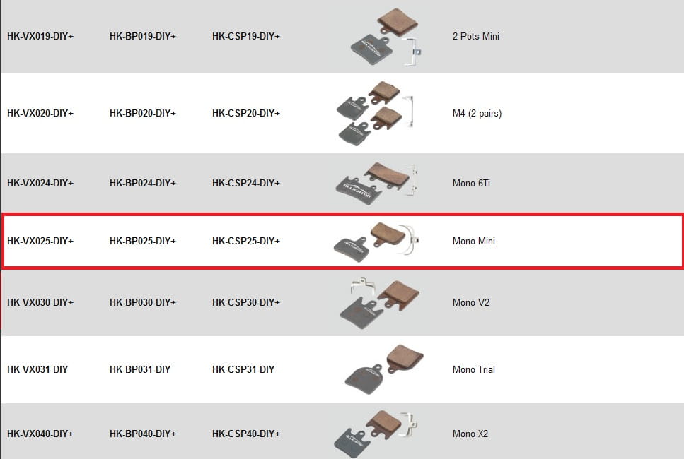 Model HK-BP025 jest kompatybilny z hamulcem: Hope Mini Mono