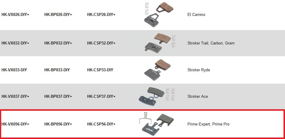 Model HK-BP056 jest kompatybilny z hamulcem: Hayes Prime