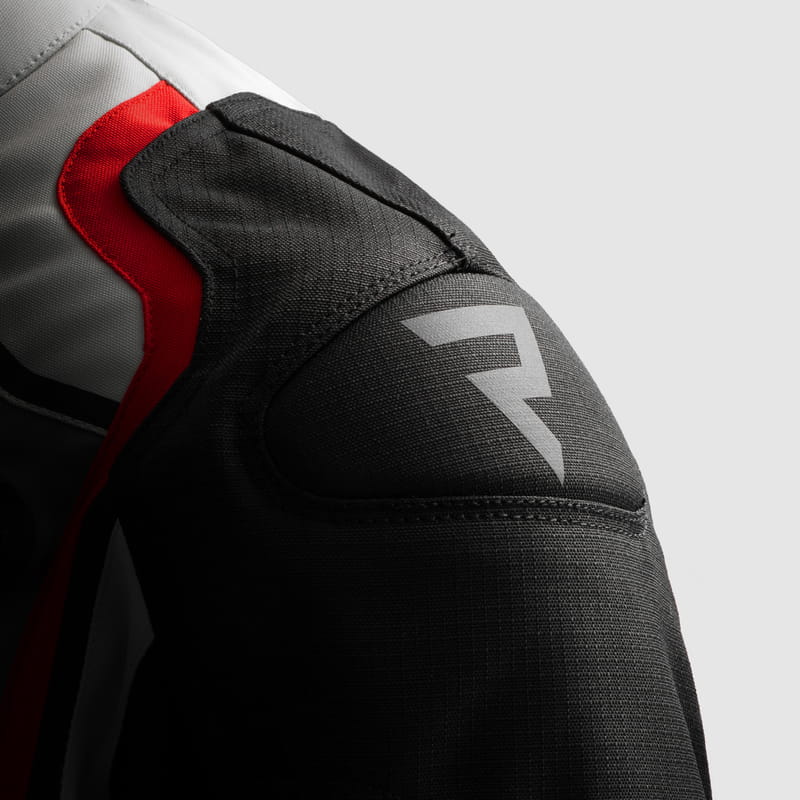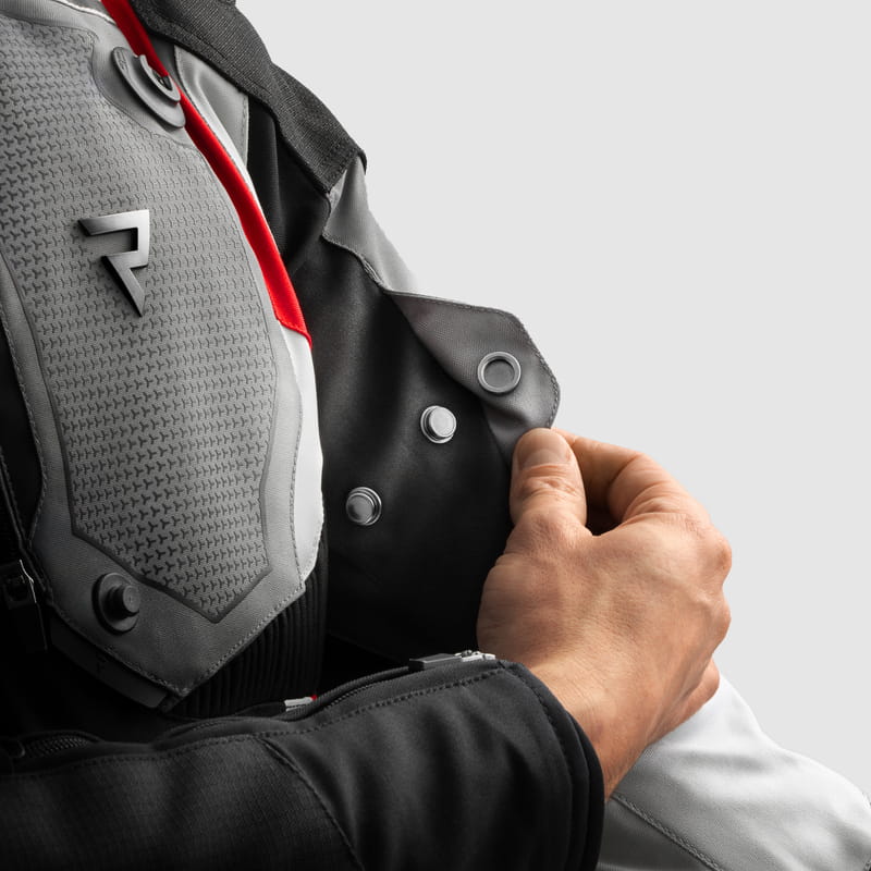 - Rebelhorn Borg II oferuje pełną ochronę motocyklisty dzięki ochraniaczom Armanox na łokciach (z regulacją), barkach i plecach. Zewnętrzne slidery barków pokryte materiałem dodatkowo wzmacniają obszary najbardziej narażone na uszkodzenia.