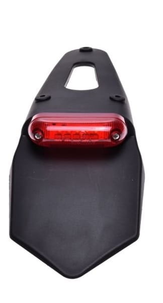 Uniwersalna lampa LED z błotnikiem na tył motocykla. Posiada 5 diod LED o mocy 12V/1W/1W. Lampa posiada łatwy uniwersalny system mocowania na trzy kable, dzięki czemu pasuje do większości motocykli.