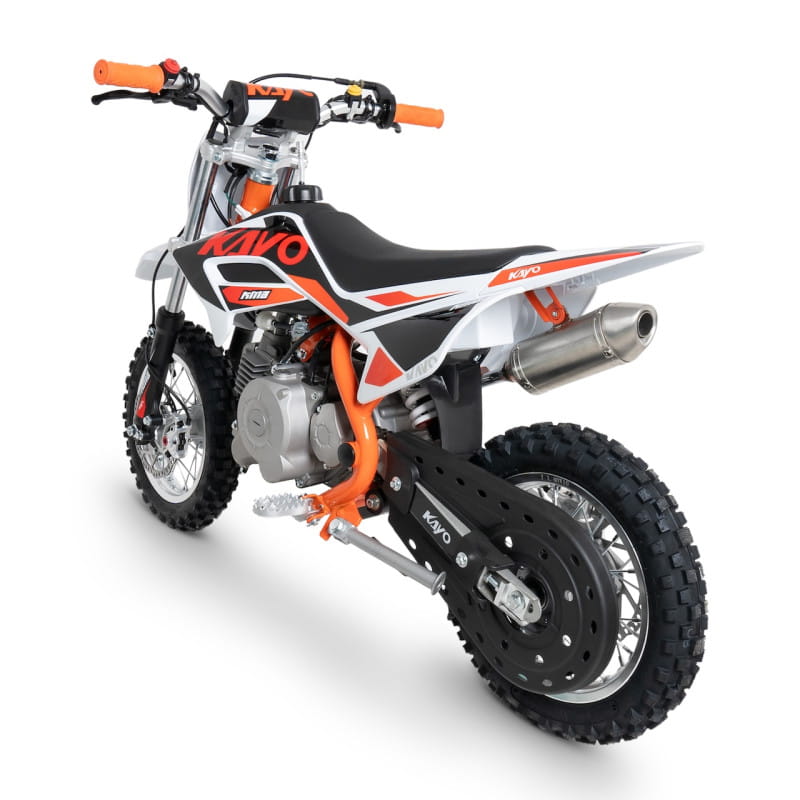 Najmniejszy spalinowy pit bike KAYO stworzony jest z myślą o najmłodszych. Masa własna pojazdu to zaledwie 42 kg, dzięki czemu dziecko nie będzie siłowało się z mini motocyklem. Niska waga to także ukłon w stronę bezpieczeństwa oraz samodzielności – nawet po przewrotce, dziecko jest w stanie samodzielnie podnieść jednoślad. Umieszczony w stalowej ramie, czterosuwowy, chłodzony powietrzem silnik o pojemności 60 cm3 w przewidywalny sposób oddaje moc za pomocą automatycznej skrzyni biegów.