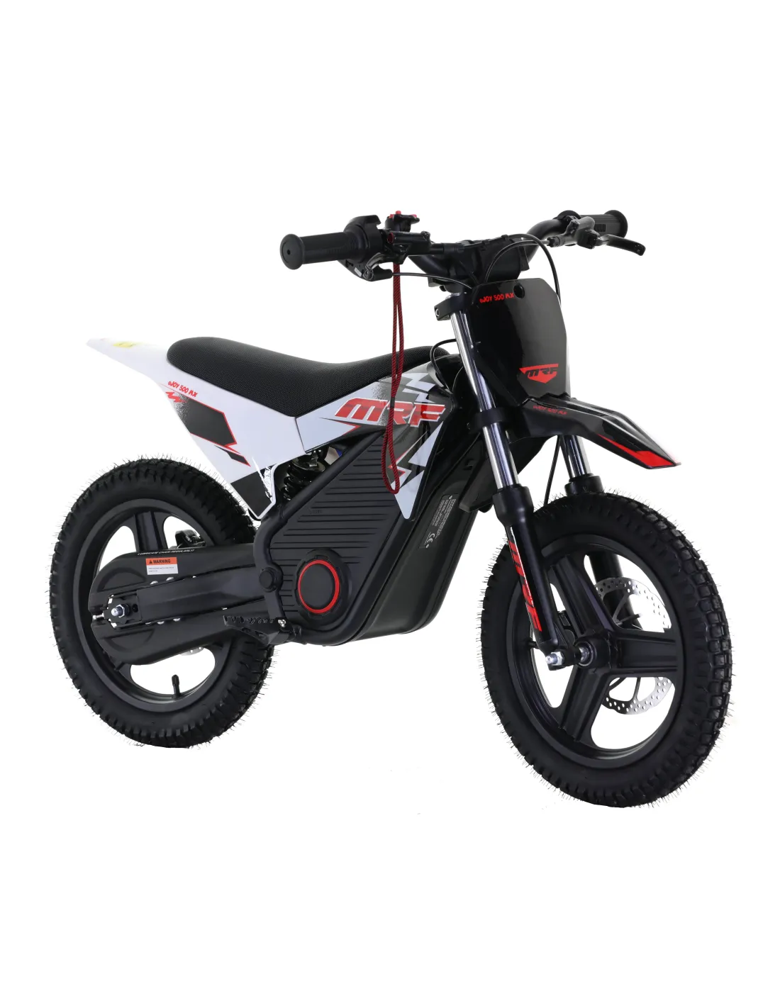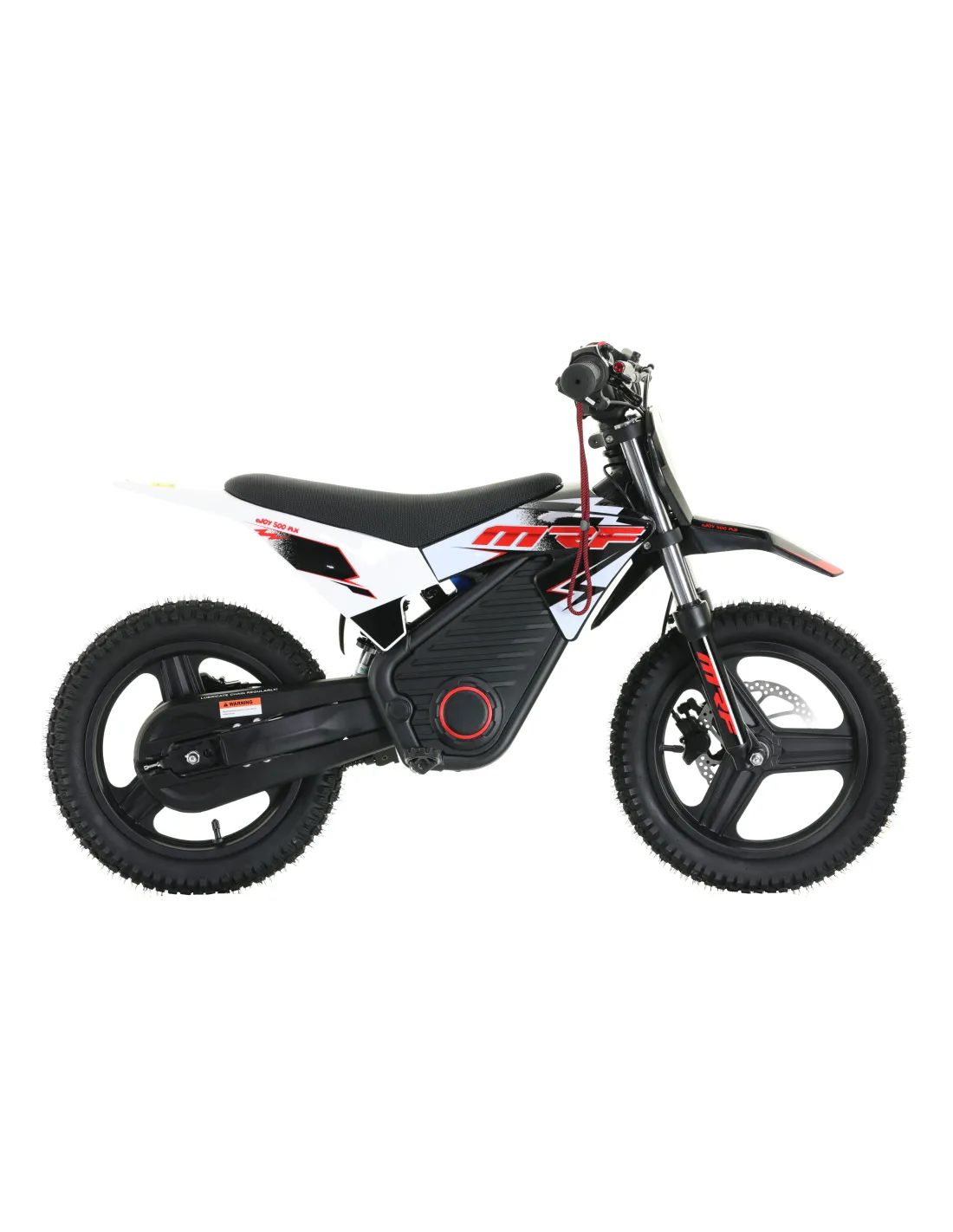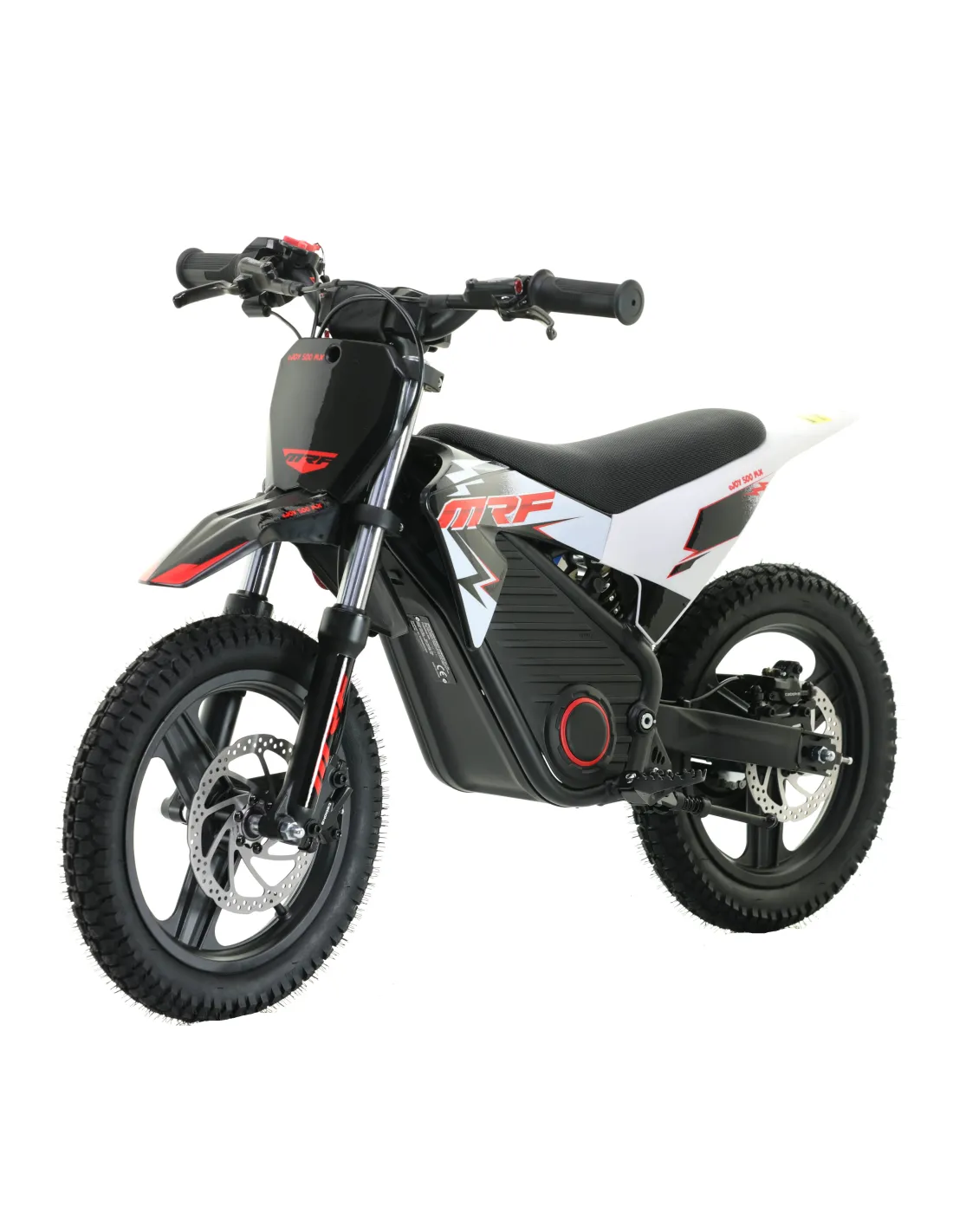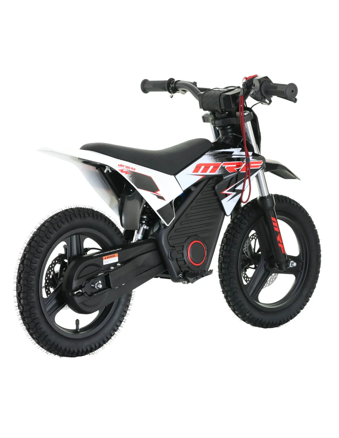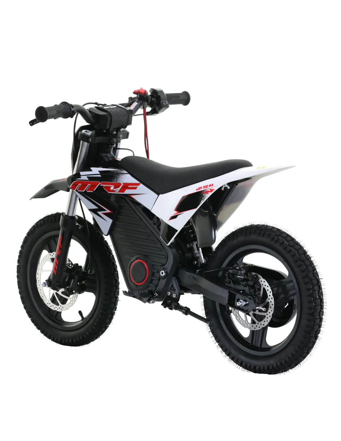 MRF eJOY 500 MX to najbardziej zaawansowany model w rodzinie eJOY – elektryczny motocykl stworzony dla dzieci, które nie boją się wyzwań i są gotowe na więcej. Ten motocykl nie ma nic wspólnego z dziecięcą zabawką – to pełnoprawna maszyna z bezszczotkowym silnikiem 500 W, która osiąga nawet 35 km/h, oferując potężną dawkę emocji i możliwości. Wysokiej jakości komponenty, trwała konstrukcja i ergonomiczna rama dają pewność prowadzenia, komfort i bezpieczeństwo – także przy bardziej dynamicznej jeździe. eJOY 500 MX został zaprojektowany z tą samą dbałością o detale, jakiej oczekujemy od motocykli dla dorosłych, ale dostosowany do możliwości młodych riderów. Trzy poziomy prędkości pozwalają rozwijać umiejętności w kontrolowany sposób, a 14-calowe koła i solidne zawieszenie radzą sobie świetnie na różnych nawierzchniach – od trawnika po leśne ścieżki.