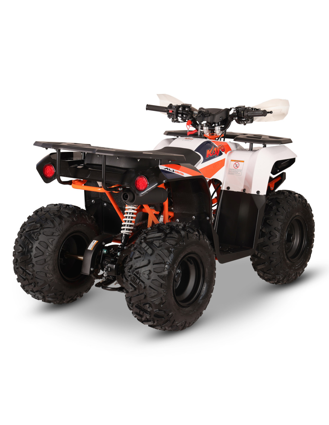 Zaktualizowana wersja KAYO AU125 posiada w standardzie osłony dłoni oraz cyfrowy licznik prędkości. Niezmienne pozostaje bezkompromisowe bezpieczeństwo. Zrywka zapłonu, która automatycznie odcina zapłon w przypadku nagłego wypadnięcia z pojazdu. To uniemożliwia dalsze poruszanie się pojazdu. Manetka gazu z regulacją, dzięki której opiekunowie mogą ograniczyć prędkość maksymalną quada i dostosować zakres pracy rolgazu do aktualnych umiejętności dziecka. Umożliwia to stopniowy i bezpieczny postęp nauki, równocześnie zapewniając kontrolowane warunki oraz pozwala rozwijać pewności siebie podczas jazdy.