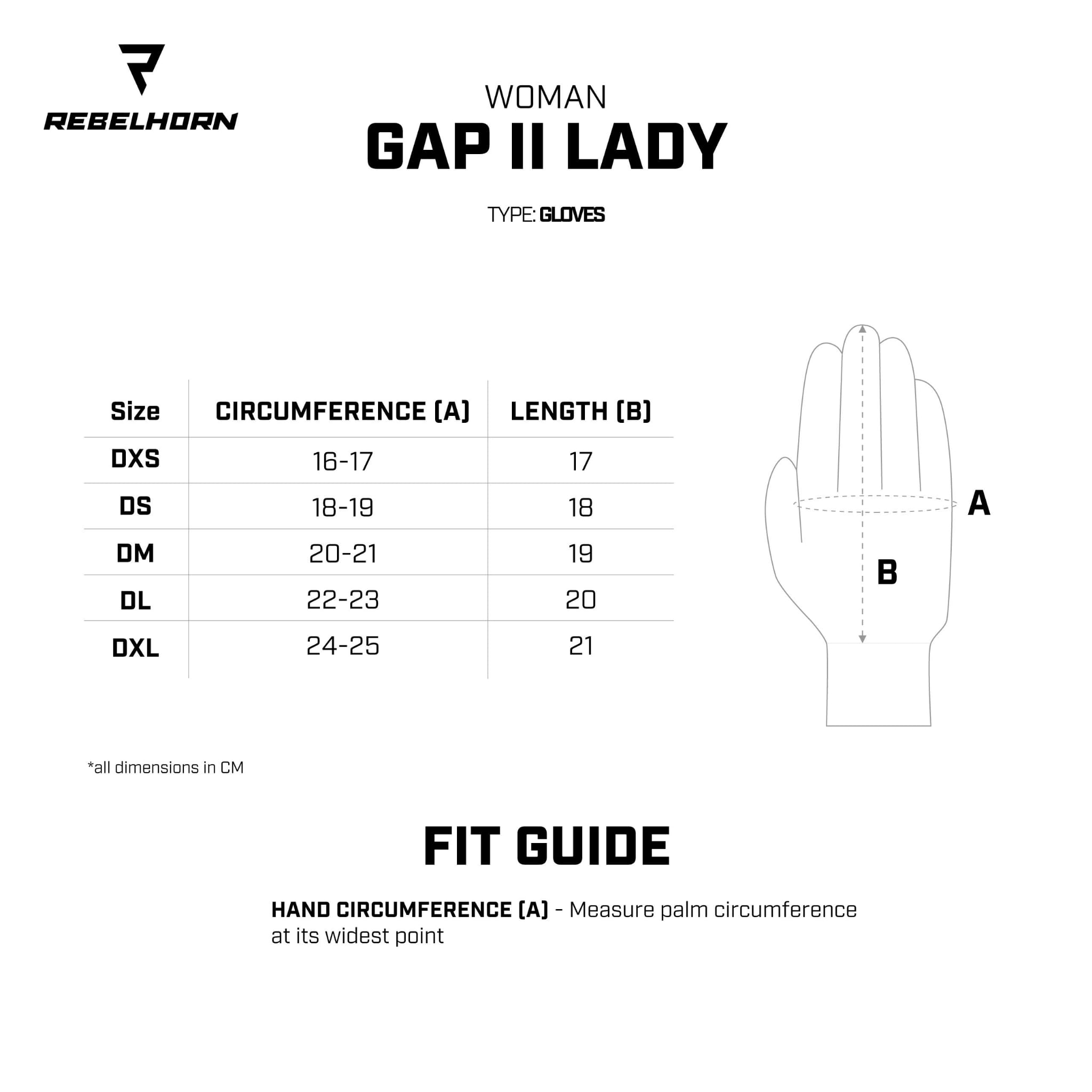 Rękawice motocyklowe skórzane Rebelhorn GAP III Lady dostosowują się do kobiecej dłoni, dzięki regulacjom i anatomicznej konstrukcji. Specjalne panele w wewnętrznej części dłoni absorbują siłę uderzenia. Rebelhorn GAP III obsługują ekrany dotykowe za pomocą wypustek na palcu wskazującym.