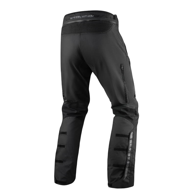 Spodnie motocyklowe tekstylne Rebelhorn Hiker III wyposażono w certyfikowane ochraniacze kolan z możliwością regulacji ich położenia. W połączeniu ze ściągaczami w pasie, spodnie dopasowują się do każdej sylwetki. Hiker III doskonale sprawdzą się podczas deszczowej pogody, dzięki membranie Reissa.
