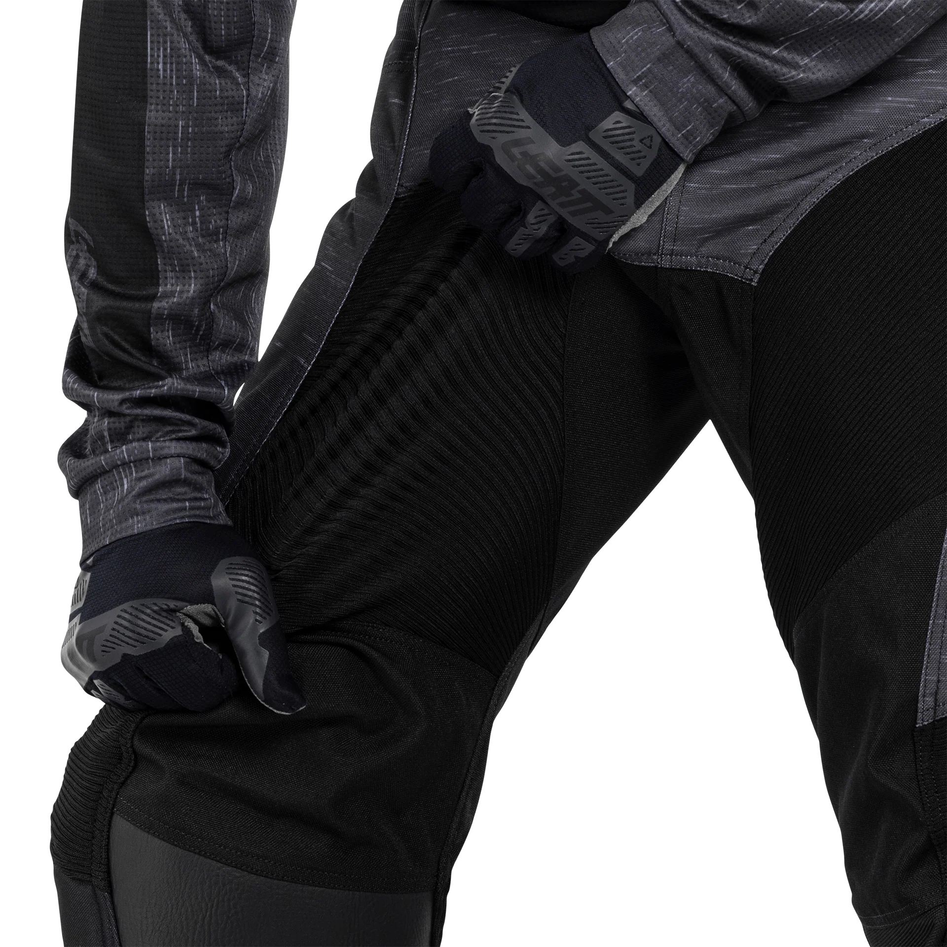 Spodnie mają klasyczny, zakrzywiony krój dla wygody i swobody ruchów. Prawa strona posiada wzmocnioną konstrukcję kolan, zapewniając dodatkową ochronę i komfort. Podobnie jak bluza, spodnie są odporne na brud, wodę i plamy. Mikroregulacja oraz 360° silikonowy uchwyt w pasie zapewniają bezpieczne dopasowanie z bluzą, oferując spójny i funkcjonalny strój do jazdy.