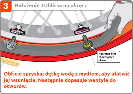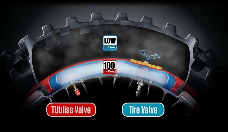 Tubliss zastępuje konwencjonalne dętki specjalną czerwoną wkładką która tworzy wewnątrz opony dwie odseparowane komory o różnym ciśnieniu.