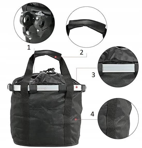 Kosz na rower montowany na kierownicę wykonany z wodoodpornego materiału,